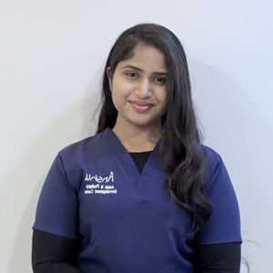 Fatema Siawala, Speech and Language Pathologist at Anshu Development Centre, specializes in speech clarity, oro-motor coordination, and feeding therapy. Known for her empathetic, child-centered approach, she tailors early intervention strategies to each child’s needs, fostering confidence and empowering families while delivering impactful, engaging therapy.